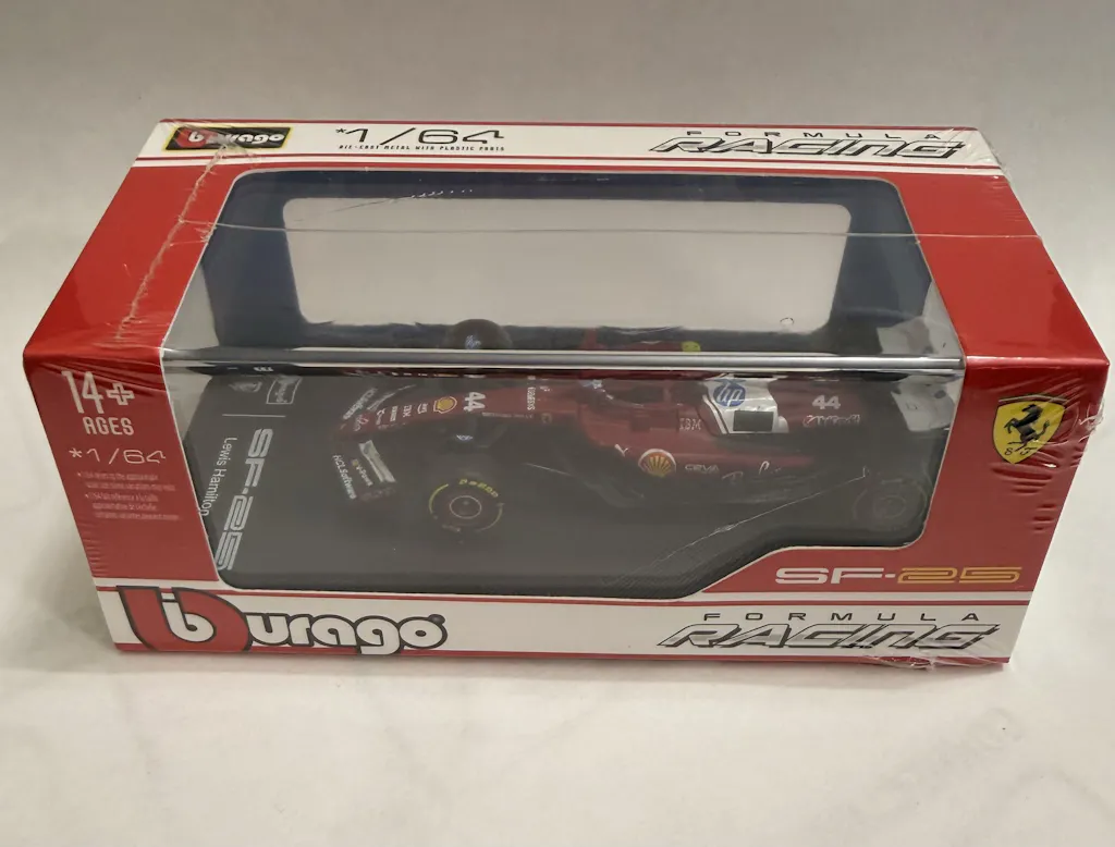 Celebrate a historic Formula 1 season with the 2025 Ferrari SF25 No.44 1:64 scale diecast model by Bburago, driven by Lewis Hamilton at the Australian Grand Prix.