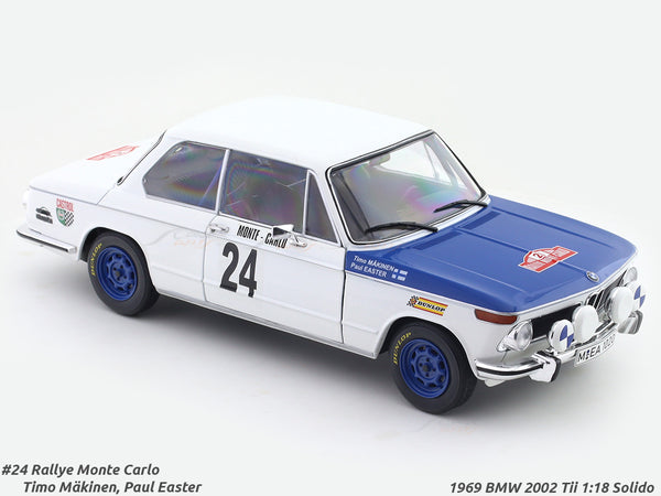 Step back into rallying history with the 1969 BMW 2002 Tii Rallye Monte Carlo #24 1:18 scale diecast model by Solido.