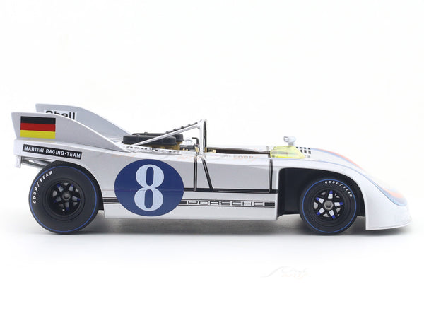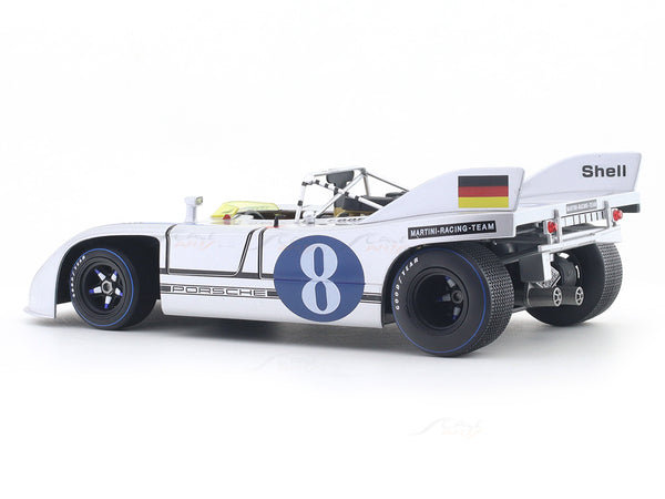 Experience Porsche’s dominance in endurance racing with the 1971 Porsche 908/03 No. 8 1:18 scale model by Werk83 a tribute to the car driven by Gérard Larrousse and Vic Elford at the 1971 Targa Florio.