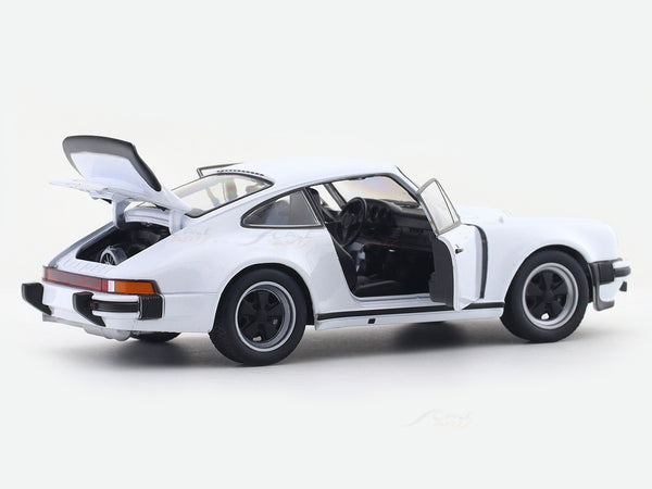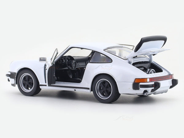 This licensed diecast collectible recreates one of the most iconic air-cooled 911s - famous for its wide-body stance, signature whale-tail spoiler, and turbocharged punch.