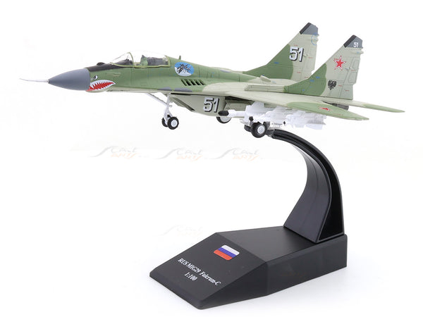 Add iconic Soviet-era air power to your collection with the Russian MiG-29 Fulcrum C 1:100 scale diecast aircraft model. Known for its agility and combat performance, this model captures the aggressive design and detailing of the legendary MiG-29 fighter jet.